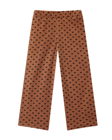 Broek met brede pijpen met print van hartjesKleur: Light BrownMerk: Someone