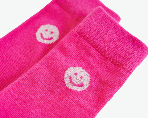 Kniekousen met smileyKleur: roze / fluo pinkMerk: Someone